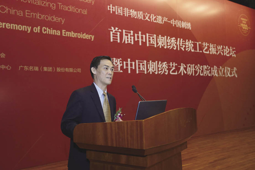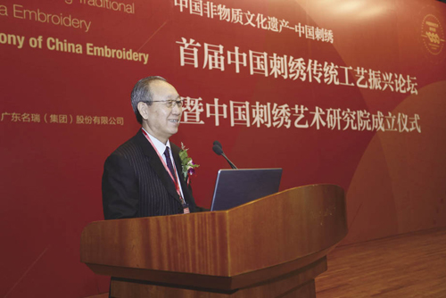 聽李當岐講述中國刺繡藝術研究院緣何落戶名瑞 本刊記者-趙媛媛 編者按:作為紡織非物質文化遺產保護和傳承的一項重要舉措,3月2日,中國紡織工業聯合會在廣東省潮州市舉辦了“首屆中國刺繡傳統工藝振興論壇暨中國刺繡藝術研究院成立儀式”。對此,《紡織服裝周刊》于3月13日開設專欄做系列報道,本期與讀者分享成立中國刺繡藝術研究院背后的故事。