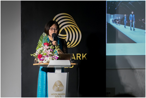 研討會現場,The Woolmark Company大客戶經理張瑩發表了致辭,對金羊毛標志項目進行了詳細介紹。金羊毛標志(WOOLMARK GOLD)代表由高品質美麗諾羊毛制成的上等面料及紗線。金羊毛標志面料必須由精選的傳統英國和歐洲的面料及紗線制造商生產。源自紳士精神的概念反映了消費者享受由金羊毛標志面料制成的美麗諾羊毛服裝所帶來的奢華體驗,只有金羊毛標志面料的精湛工藝及傳承才能實現。