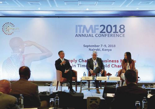 2018國際紡織制造商聯合會年會在肯尼亞召開 本刊記者-徐長杰 文/攝 2018國際紡聯大會上,國際紡聯副主席、中紡聯會長孫瑞哲以“中國紡織服裝供應鏈與快速變化時代的社會責任”為題,同與會代表分享了中國紡織供應鏈建設的經驗與做法:供應鏈柔性、綠色發展、渠道融合。孫瑞哲表示,中國正在以更加積極的姿態構建開放型經濟,“引進來”和“走出去”的廣度和深度在不斷擴大,不斷拓寬市場空間,完善產業配套。 當地時間9月7~9日,議題為“在快速變化時代的供應鏈和商業模式”的2018國際紡織制造商聯合會年會在肯尼亞首都內羅畢召開,300多名紡織產業代表與業界知名的專家、制造商、買家和投資者一道,探討如何應對行業面臨的全球性挑戰和機遇。 國際紡聯管理委員會會議同期召開,會議選舉產生了國際紡聯新一屆董事會成員,任期兩年(2018~2020年)。韓國纖維產業聯合會會長成耆鶴任國際紡聯主席,中國紡織工業聯合會會長孫瑞哲任國際紡聯第一副主席,來自印度Premier公司的斯瓦尼桑任國際紡聯第二副主席,來自瑞士Santex A.G.公司的亨尼茲任國際紡聯財務官。同時,國際紡聯增選了三位董事會成員,分別是來自埃及的卡森姆,西班牙的胡安·帕雷斯和印度尼西亞的米歇爾。 出席此次國際紡聯大會的中國代表團陣容強大,國際紡聯副主席、中國紡織工業聯合會會長孫瑞哲,國際紡聯前主席、中紡聯原會長王天凱,國家發展和改革委員會產業協調司巡視員王東,中紡聯副會長楊紀朝、徐迎新、陳大鵬、李陵申、端小平、楊兆華,中紡聯副秘書長、外事辦主任袁紅萍,中紡聯副秘書長、科技發展部主任彭燕麗,中紡聯副秘書長、行業發展部主任李進才,中紡聯生產力促進部主任、中國紡織信息中心主任喬艷津,中國印染行業協會會長陳志華,中國紡織建設規劃院院長馮德虎,中國紡織工業聯合會社會責任辦公室主任閻巖,及中紡聯各業務部門代表,中國紡織優秀企業代表共80余人出席會議。 大會圍繞七大議題展開,分別是纖維會議、非洲紡織工業、紡織價值鏈、紡織服裝工業技術和數字化、零售/電子商務、國際紡聯審計倡議與綠色經濟。