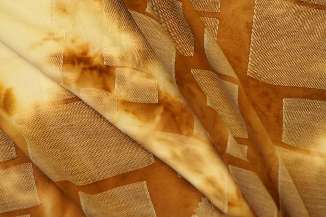 面料名稱: 成分:優可絲?BV纖維64%,Sorona36% 看點:優可絲?BV纖維采用原生木,天然柔軟舒適,Sorona賦予彈性和回復保型性,面料具有絲滑質感,如嬰兒肌膚觸感,柔軟舒服又彈性,面料有抗起毛起球性,護膚柔膚健康,引領未來風范。 ![]() 獲獎企業:浙江七色彩虹控股集團有限公司 面料名稱:暮染輕紗 成分:再生滌綸59%,優可絲?BV纖維36%,氨綸5% 看點:新型組織結構設計,環保扎染工藝進行染色,經剪花形成規則的花型,扎染處理呈現出別具一格的多彩效果,或浸染一片或濺射一片,豐富的漸色與規則剪花圖案融為一體。 |