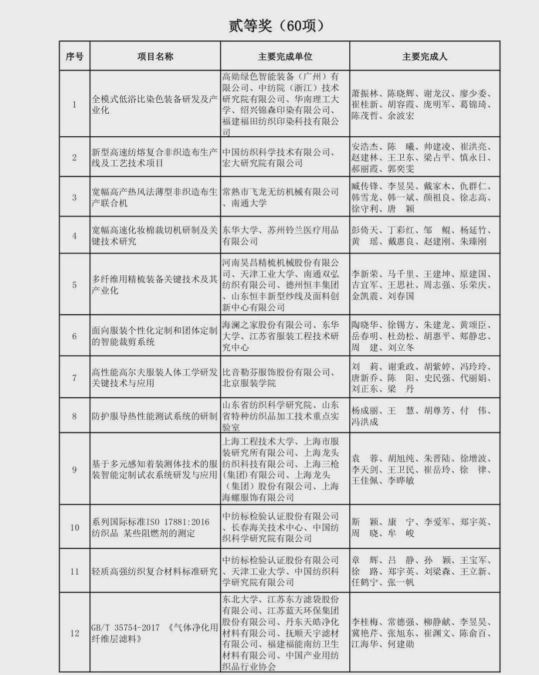 本刊記者-郝杰 12月22日,中國紡織工業聯合會隆重召開“紡織之光”2020年度中國紡織工業聯合會科技教育獎勵大會,發布并表彰“紡織之光2020年度中國紡織工業聯合會科學技術獎、教育獎、針織內衣創新貢獻獎。獲獎名單如下: “紡織之光”2020年度中國紡織工業聯合會科學技術獎