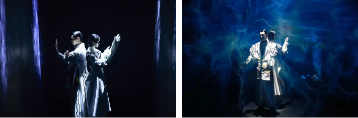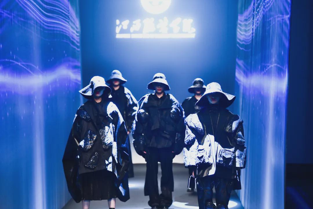 水,這個隱喻貫穿發布會全場。此次發布會中,江西服裝學院通過全息投影技術呈現作品的同時,還帶領現場觀眾重溫學校大事件。虛擬影像中,一滴滴水珠聚合成數字“30”,投注在模特身上,緊接著變成