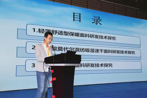 青島雪達(dá)集團(tuán)有限公司副主任、工程師張洪賓介紹了三類企業(yè)開發(fā)的產(chǎn)品,一是防護(hù)型功能紡織品,包括遮熱防曬、防紫外線、抗菌驅(qū)蚊、防汗跡加工、防病毒產(chǎn)品;二是舒適型功能紡織品,包括涼爽系列、木糖醇纖維吸水吸熱清爽產(chǎn)品、遠(yuǎn)紅外發(fā)熱系列、姜辣素吸濕發(fā)熱系列、茶花油保濕親膚產(chǎn)品、玫瑰精油纖維產(chǎn)品、牛油果油纖維產(chǎn)品、羊絨蛋白系列;三是保健型功能紡織品,有71K纖維廣譜抗菌系列產(chǎn)品、備長炭抑菌除臭系列產(chǎn)品、富硒纖維發(fā)射負(fù)氧離子系列、白金纖維抗氧化系列、石墨烯纖維系列等。