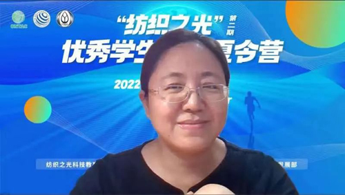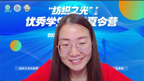 張志穎表示,第一屆“紡織之光”夏令營(yíng)名額只有10個(gè),這一屆擴(kuò)大到29個(gè)名額,很高興能跟五湖四海同學(xué)進(jìn)行學(xué)習(xí)交流,希望大家珍惜這次機(jī)會(huì)。她還與大家分享了自己在近一年來在疫情下,找工作失敗和成功經(jīng)歷。