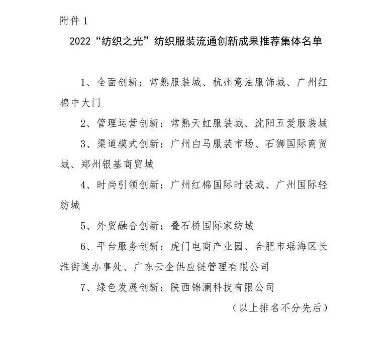 | 2022“紡織之光”紡織服裝流通創新成果推薦名單公示 |