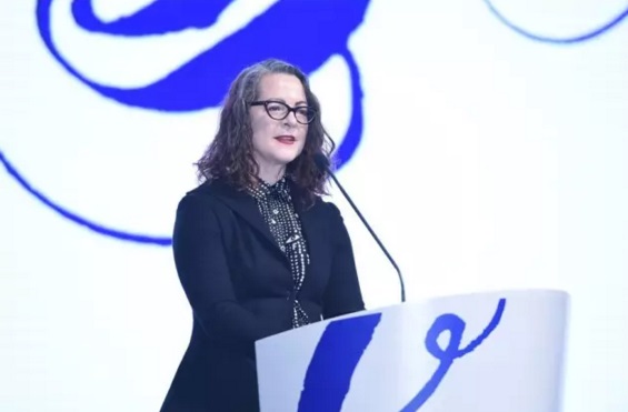 北京服裝學院黨委書記馬勝杰致辭。 北京服裝學院黨委書記馬勝杰,IFFTI聯(lián)盟主席、倫敦藝術(shù)大學副校長、倫敦時裝學院院長Frances Corner,《VOGUE服飾與美容》雜志編輯總監(jiān)張宇為大會開幕致辭。