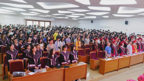![]() “春華秋實又幾載,桃李滿園競芳菲。”在畢業典禮現場播放的VCR中,記錄了學子們在校學習生活點點滴滴,運動場上、教室里、圖書館中、食堂里、宿舍中……大家興奮地在VCR里找著身邊的你我他,滿滿都是最美好的記憶。那一張張照片、一段段視頻,記錄了學子們最美的青春。今天他們將為大學生涯畫上句點,帶著對母校的深深依戀和離別的淡淡傷感,邁出校門,走向遠方,去征服屬于他們的星辰大海。
