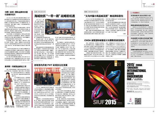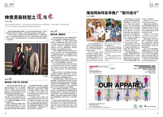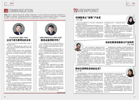 ?本期專欄推出“行家論道”欄目,陸續(xù)刊登業(yè)內(nèi)知名企業(yè)家、行業(yè)專家的言論觀點(diǎn)。兼聽則明,或許下一個(gè)業(yè)界大咖就是你! ?知名欄目“鏘鏘三人行”繼續(xù)發(fā)力,終端服務(wù)為何需要“距離”產(chǎn)生美?自動(dòng)化服裝設(shè)備將怎樣助力產(chǎn)業(yè)轉(zhuǎn)型?移動(dòng)互聯(lián)網(wǎng)改變誰的生活?看過你就知道! ?“新絲綢之路經(jīng)濟(jì)帶”實(shí)在太熱門,千年古城西安將攜手華東·萬悅城獻(xiàn)上“2015首屆中國(guó)西安·絲綢之路華東國(guó)際服裝節(jié)”,能否打造一個(gè)傳統(tǒng)文化與現(xiàn)代時(shí)尚碰撞的舞臺(tái)?采訪中,我們發(fā)現(xiàn),商家進(jìn)駐華東·萬悅城都是用搶的,這里究竟有何魅力? ?第七屆中國(guó)(常熟)休閑裝設(shè)計(jì)精英大獎(jiǎng)賽初評(píng)已經(jīng)揭曉,一份份精彩的入圍作品值得鑒賞,更讓我們期待選手們5月總決賽時(shí)的驚艷登場(chǎng)! ?本期大片獨(dú)家呈現(xiàn)中國(guó)十佳時(shí)裝設(shè)計(jì)師來芮2015春夏系列,她是如何用簡(jiǎn)潔的言語表達(dá)極致、簡(jiǎn)單、純粹的設(shè)計(jì)美學(xué)的? ?富怡“零等待”縫紉機(jī)來了,不停機(jī)、連續(xù)縫,服裝生產(chǎn)效率翻番真的不是夢(mèng)! ?“2015中國(guó)服裝品牌大獎(jiǎng)巡禮”欄目出爐,“最佳青春女裝品牌”歌莉婭、“最具創(chuàng)意品牌”珂蕾朵姆如何詮釋品牌“真滋味”? ?時(shí)尚是什么?鮮、辣、甜、咸,帶你品味不一樣的深圳時(shí)尚味道。 親們,夠精彩嗎?看得清嗎?看不清就趕快訂閱吧!懂時(shí)尚的人必讀。