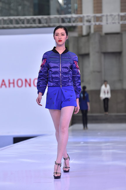 當(dāng)天的第二場秀是華羽服裝有限公司自主品牌“雅鴻”的羽絨服專場秀。作為重慶當(dāng)?shù)赜忻挠鸾q服品牌,“雅鴻”羽絨服以天然纖維織物、天然填充料為材料,又緊跟潮流,滿足了女性返璞歸真又追求時尚的情結(jié)。