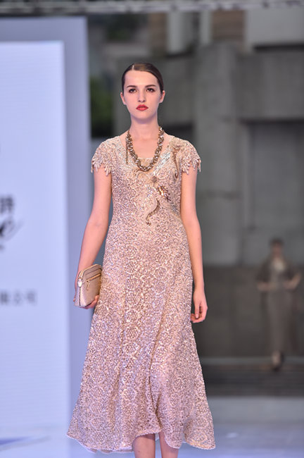 在第三場秀中,深受重慶女性熱愛的九千匯成為了當(dāng)天的亮點,據(jù)說現(xiàn)場有很多觀眾都是慕名而來。據(jù)設(shè)計師介紹,九千匯的產(chǎn)品面料全部來自歐洲、日本、韓國和(中國)臺灣等國家和地區(qū),在設(shè)計上,九千匯緊跟國際最流行元素,采用獨特的3D立體剪裁和斜裁手法制作,在模特身上呈現(xiàn)出了完美的動態(tài)展示效果。