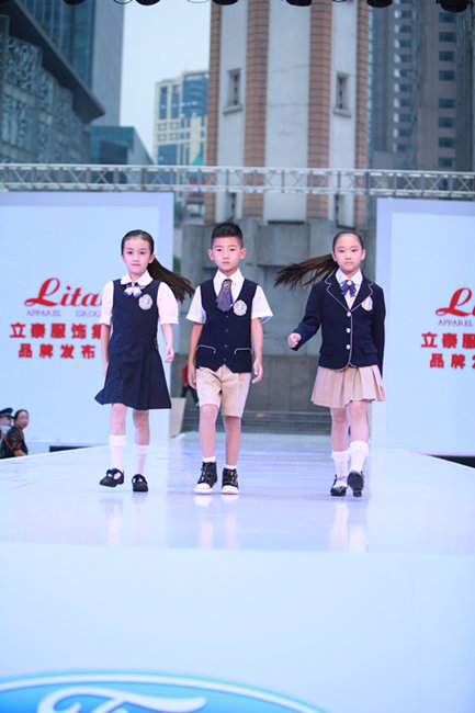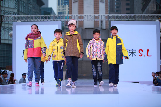 第三場發布秀也是一場童裝秀,由唐宋S.L童裝品牌擔綱發布。在本場秀中,設計師抓住了少年兒童熱愛大自然、親近大自然的特點,設計了一系列的沖鋒衣、兒童雨衣、皮膚風衣產品。發布會現場,背著小背包的小模特們用自由輕快的步伐詮釋了唐宋S.L童裝自由、健康、隨性、有趣的產品風格。在看完秀后,現場有不少觀眾對他們的產品紛紛“點贊”,甚至還有人以為這場秀是《爸爸去哪兒》的重慶時裝周版。