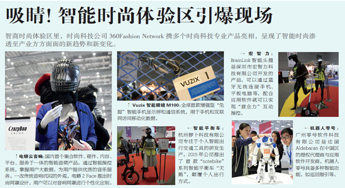 在智能與時(shí)尚的激烈碰撞下,科技浪花所帶來(lái)的思維顛覆和視覺(jué)體驗(yàn)令智能時(shí)尚主題展區(qū)成為展會(huì)中的最亮眼所在。極具未來(lái)感的智能時(shí)尚產(chǎn)品打破了以往人們對(duì)于可穿戴設(shè)備等傳統(tǒng)智能產(chǎn)品的固有印象,開(kāi)啟了一場(chǎng)全新的啟迪之旅。而多家實(shí)力企業(yè)對(duì)于智能時(shí)尚概念的開(kāi)發(fā)與重新解構(gòu)則為產(chǎn)業(yè)洞察消費(fèi)者新動(dòng)向提供了可信賴(lài)的依據(jù)。
