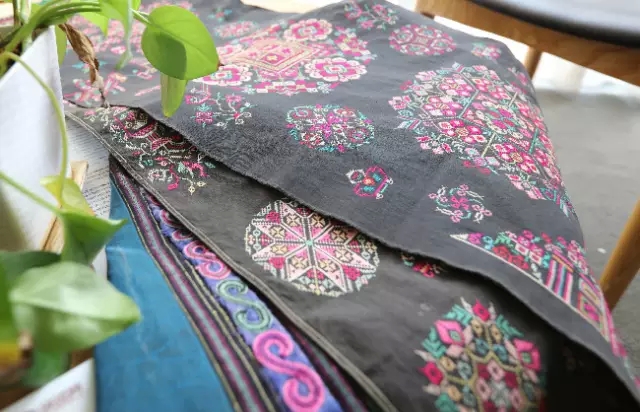 發布會中我們能看到苗繡特有的辮繡、打籽繡、疊繡、破線繡、皺繡、馬尾繡、鎖繡等等工藝。而刺繡圖案中的故事才是此次發布會傳遞的文化重點,苗繡將不同形態的物象自由組合,又不受自然形態和時空的約束,通過藝術的抽象,大膽地進行夸張變形從而情趣盎然。