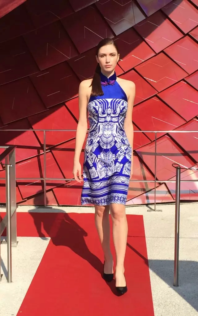 帶有強烈中國服飾文化元素及意式裁剪的時裝與萬科館盤龍為靈感的外形、以及用中國傳統工藝燒制而成的中國紅龍鱗相得益彰。得到了在場嘉賓IED歐洲設計學院米蘭時裝學院院長等一行;MIP米蘭理工大學教育首席執行官等一行;以及中國住米蘭總領事館兩位副總領事的高度美譽。