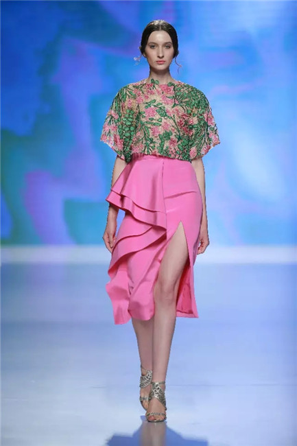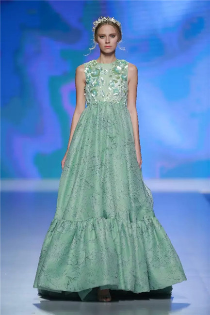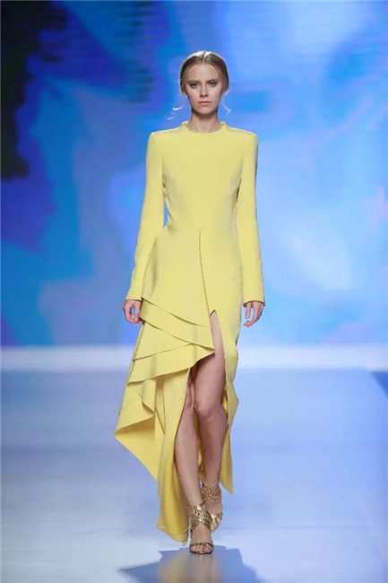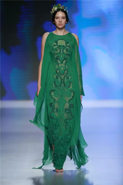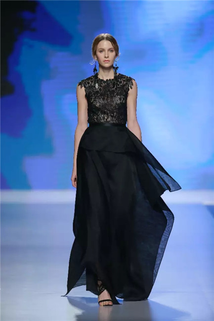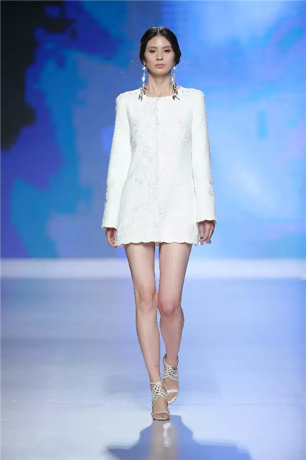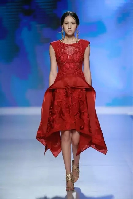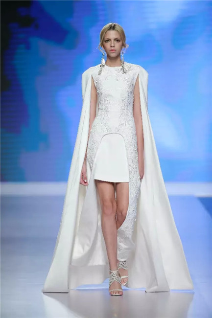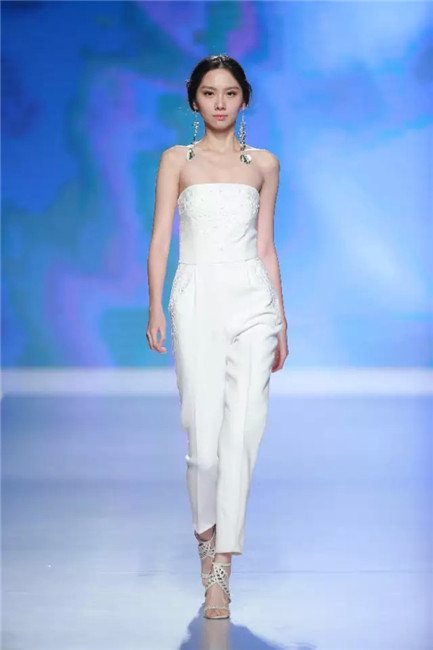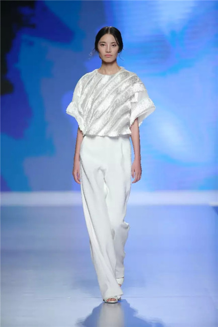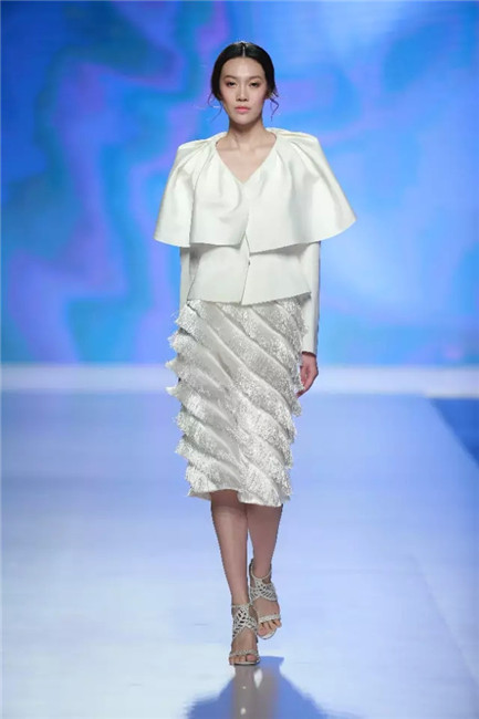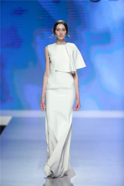 北京國(guó)貿(mào)大酒店,中國(guó)國(guó)際時(shí)裝周閉幕秀,可謂寸土寸金寸光陰,設(shè)計(jì)師謝鋒只帶來(lái)了定制品牌JEFEN BY FRANKIE的32套作品。不是土豪,而是另有故事——科技改變時(shí)尚生活。 開(kāi)場(chǎng),純凈的潔白,回歸初始。在這場(chǎng)以“伊甸園”為主題的發(fā)布中,黑白主色調(diào)契合了當(dāng)前國(guó)際上回歸經(jīng)典的流行態(tài)度,其間穿插石榴紅、青果綠、淺鵝黃等大膽色調(diào),烘托出當(dāng)日頒獎(jiǎng)典禮的氛圍。值得一提的是最后的大禮服系列,看似繁復(fù),實(shí)則以精準(zhǔn)定位刺繡,省去了傳統(tǒng)服裝的各種破縫線以及結(jié)合線,使得整件衣服除了拉鏈以外,無(wú)縫縫合,渾然一體,天衣無(wú)縫。