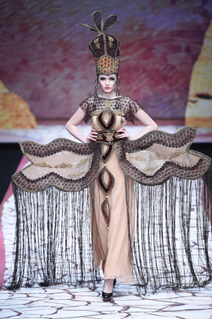 中國服裝設(shè)計(jì)師協(xié)會(huì)副主席兼秘書長張慶輝表示,設(shè)計(jì)師陶陶的作品以國際化的著裝設(shè)計(jì),表達(dá)出中國民族特色服裝的理念值得肯定,作為一個(gè)從新疆成長起來的設(shè)計(jì)師,非常不容易,正是他們的存在,讓新疆這塊新的紡織服裝熱土快速成長。 陶陶在接受《紡織服裝周刊》記者采訪時(shí)表示,在她眼里,新疆的服裝不僅是民族的,更是世界的,就像這次以雅丹地貌為設(shè)計(jì)靈感來源一樣,天賜的雅丹世稱魔鬼城,是最全面的地質(zhì)資料寶庫。“在繁榮的絲綢古道上,它是一個(gè)最大的天然路標(biāo),我希望以此傳達(dá)給人民新疆蘊(yùn)含的神秘資源和天然景色,在服裝表現(xiàn)手法上,特有的圖騰造型模仿大自然的形象,大膽的簡線條設(shè)計(jì),在服裝配飾上運(yùn)用了例如駝鈴、馬鞍、馬蹄等西域元素,描繪了新疆人民質(zhì)樸自然的生活理念和講究個(gè)性的著衣理念。”陶陶如是說。 據(jù)悉,本次發(fā)布之后,設(shè)計(jì)師陶陶還計(jì)劃參加10月份舉辦的中國國際時(shí)裝周,她感慨道,在“一帶一路”背景下,新疆政府對(duì)產(chǎn)業(yè)給予了很大的支持,她的事業(yè)得到了各項(xiàng)政策的切實(shí)幫助,作為一名了解新疆文化和生活的本土設(shè)計(jì)師,她將為推動(dòng)新疆民族服飾設(shè)計(jì)進(jìn)步,貢獻(xiàn)更多的力量。