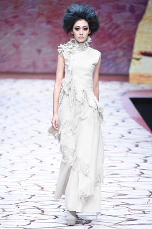 3月27日晚,新疆本土設(shè)計(jì)師陶陶帶著她的新一季作品“雅丹·垚”登陸梅賽德斯-奔馳中國國際時(shí)裝周,在751 D·PARK中央大廳為業(yè)界呈現(xiàn)了一場極具西域風(fēng)情的誠意大秀。 與兩年前初次登陸中國國際時(shí)裝周的作品“樓蘭·爻”不同,本次的作品設(shè)計(jì)靈感來源于新疆獨(dú)有的雅丹地貌,又名風(fēng)蝕脊(Yardang),是一種典型的風(fēng)蝕性地貌,延續(xù)使用亞麻面料的樸實(shí)質(zhì)感表現(xiàn)設(shè)計(jì)主題及靈感,運(yùn)用抽紗來表達(dá)雅丹紋理的柔美,采用褶皺面料呈現(xiàn)雅丹雄渾的壯美。新作風(fēng)格包含流蘇、纏繞、粗糙、叛逆、自由、隨意等元素。