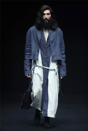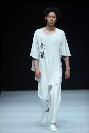看點三 SIVICO·喬丹:女王來巡山,“你猜”怎么樣? 一夜之間,我們徹底記住了一個深黑大眼線、高聳丸子頭、黑色戰袍的女設計師:喬丹。她用實際行動告訴我們三件事兒:男色時代早已來臨,不基腐無市場;衣著本不分性別,顏色也是;秀,是任性的。 SIVICO·喬丹這一系列的男裝主題是“你猜”。靈感來源于“你猜、你猜我猜不猜、你猜我猜你猜不猜”這一循環句式流行語。在小編看來,這句話的意思充滿調侃甚至戲謔:我任性,這就是我。