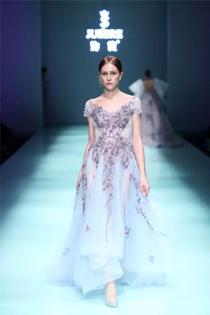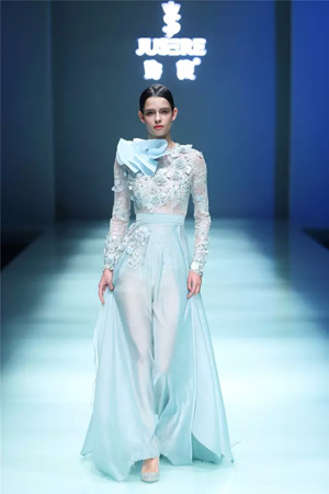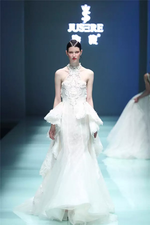 看點二 絕設:神圣之外,婚紗也能做出時尚溫度 繼去年10月代表蘇州虎丘婚紗城亮相中國國際時裝周之后,3月30日下午,知名婚紗禮服品牌“絕設”再次回歸時裝周,設計師魏啟瑩帶著全新設計的30套婚紗禮服上演了一場帶有溫度的時尚大秀。 本季發布的主題源于絕設的品牌名,意為“絕對的原創設計”。魏啟瑩表示,本季作品的設計靈感來源于歐洲建筑中的雕刻藝術,特別是歐洲巴洛克風格教堂上呈現的雕刻藝術作品給了她不少啟發。
