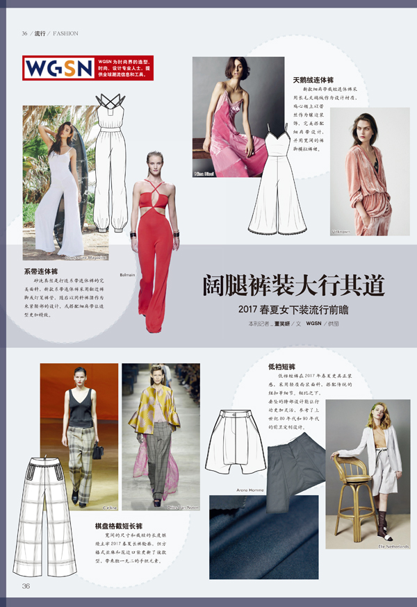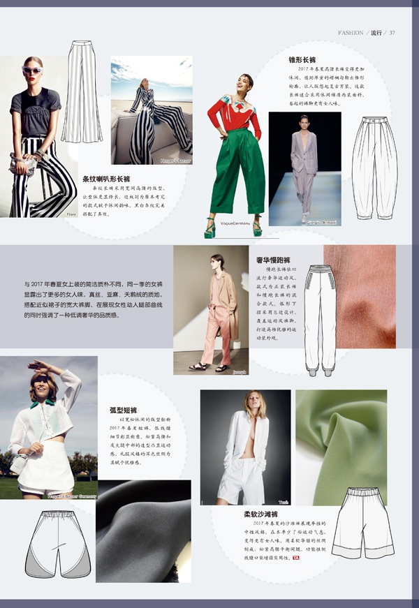 與2017年春夏女上裝的簡潔質樸不同,同一季的女褲顯露出了更多的女人味,真絲、亞麻、天鵝絨的質地,搭配近似裙子的寬大褲腳,在展現女性動人腿部曲線的同時強調了一種低調奢華的品質感。