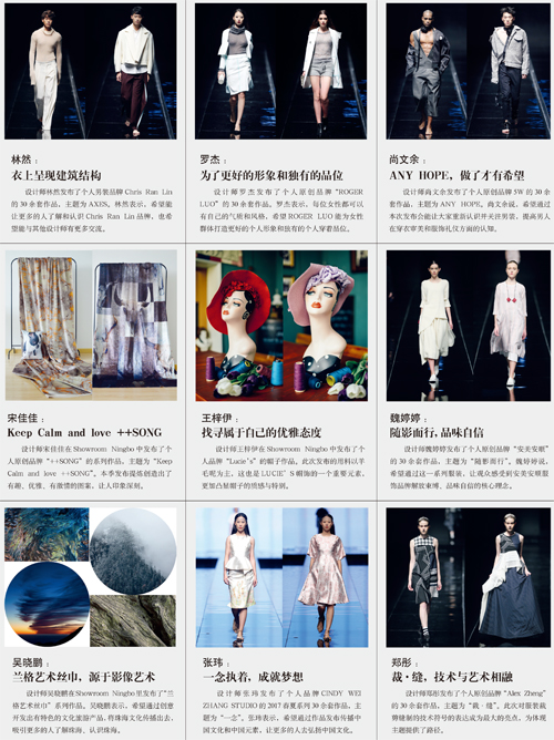 本刊記者-賴松 10月19日晚,法國Be Celine.b女裝品牌發布了以設計師家鄉為靈感來源的2017春夏絲質系列,拉開了第20屆寧波國際服裝節上的時尚發布大幕,在共計4天時間里,寧波陸續上演了22場時裝秀。 記者注意到,在這場時尚盛宴中,除了體現寧波服裝產業鏈優勢的本土品牌專場發布外,最大的看點在于連續6年在服裝節上舉辦的中國時尚同盟新銳設計師專場發布。 據了解,今年共有15組設計師參與發布,既有多次出現的黃海兵、鄭彤、張瑋等,也有首次亮相服裝節的王梓伊、林然、吳曉鵬等。除動態發布外,組委會還單獨設置了靜態展,根據設計師的意愿入駐“Showroom Ningbo”展示。 作為服裝節的亮點環節之一,Showroom Ningbo為服裝企業詳細了解設計師提供時間與空間,方便服裝企業與設計師深入交流,利于引入設計師力量,同時也為設計師尋求更具發展潛力的市場提供有效平臺。 下面請跟隨記者的視角,全面盤點本次15組設計師的發布。