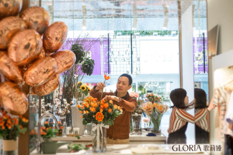 “旅行就是活出美麗”一直是歌莉婭的時尚主張,但旅行并非常態。于是,歌莉婭在同一空間里將鮮花、衣物、藝術與旅行有機結合,打破了逛街的固有模式,讓購物體驗充滿藝術時尚想象,啟發美好生活。