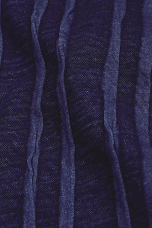 獲獎企業(yè):廣東菜根科技股份有限公司 獲獎面料:現(xiàn)代牛仔 專家點評:在緯編單面提花組織中,棉紗編織平紋底布,毛紗階段性參與編織,在背面形成長浮線結(jié)構(gòu),經(jīng)縮絨后,形成不規(guī)則凸起的褶皺豎條,兩面差異的新現(xiàn)代牛仔風(fēng)格,給人以強烈的視覺沖擊感,詮釋了創(chuàng)舊式再造的強勁趨勢。