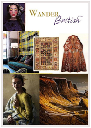 3.Wander British-漫步英倫 該主題講述了一個新的關(guān)于雅致英國風(fēng)格復(fù)興的設(shè)計概念,設(shè)計靈感源自于英屬地旅行筆記,它融合了蘇格蘭鄉(xiāng)村的花呢格紋,印度絲綢、地毯和長袍的圖案,亞洲大草原的色彩以及古中國元素,展現(xiàn)了文化的碰撞和交融。