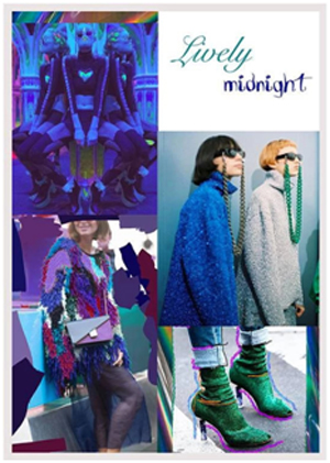 4.Lively Midnight-活力午夜 靈感源自于新的千禧一代,用獨特閃光材料和新科技、高飽和色來突顯個體存在的獨一無二,這是對集個性、新穎、獨特于一體的80/90后的日常詮釋。