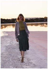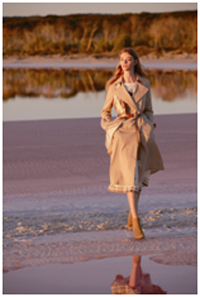 獨家呈獻 發出感悟自然的美麗宣言 帶著“環球發現,活出美麗”的心,設計師把捕捉的在地元素,運用到獨家設計中:袋鼠島是世界上唯一有純利古尼亞蜜蜂的地方。春季,正是蜜蜂采蜜最繁忙的季節,設計師以此為靈感在針織麂皮絨上加上蜜蜂釘珠和波浪邊設計,為外套增添了幾分玩味感。 面料上,歌莉婭除了從品質和舒適度上考量,還會考慮容易護理和實穿。以略帶彈性的針織麂皮絨為面料的春季外套,親膚保暖,不易起皺,最適宜成為愛旅行的你行李箱中的必備單品。