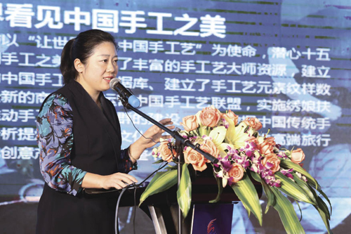 依文服飾股份有限公司副總裁、依文手工坊副董事長 殷麗莉: 依文中國手工坊已經有十五年的時間,現在已經搭建起8000繡娘的大數據庫,也有三四千從繡娘繡種當中提取的紋樣搭建在數據庫,在數據庫建設方面已經走在行業前列。在十五年的探索過程中,我們形成了現在發現、整理、創新和應用的模式。我們在非物質文化遺產的保護過程中,也做了精準扶貧,所以在前不久也拿到了“全國萬企幫萬村精準扶貧”大獎,這份鼓勵對我們非常重要。